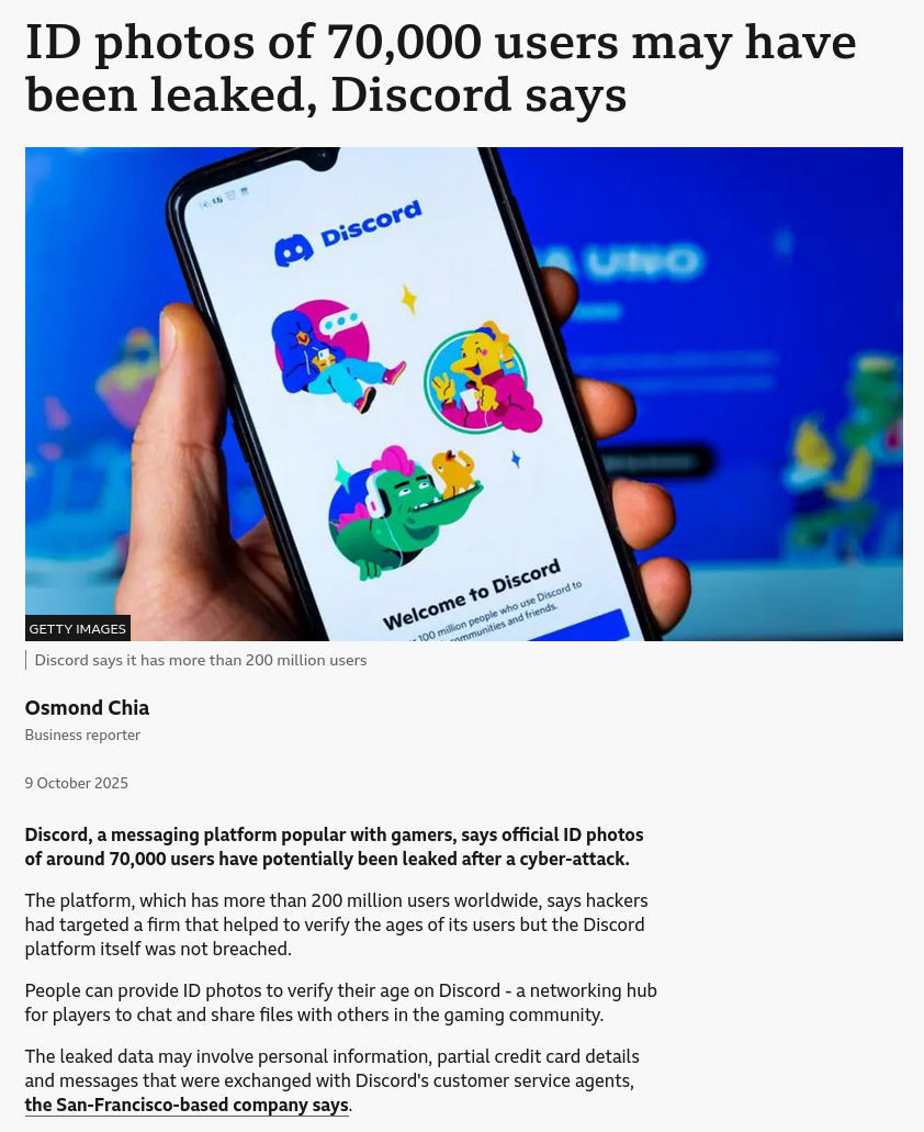 Less than 4 months after a data breach which saw over 70,000 users' data leaked after a cyber-attack, Discord want, in a global roll out of their "teen by default" setting, over 200 MILLION users to submit their personal data?